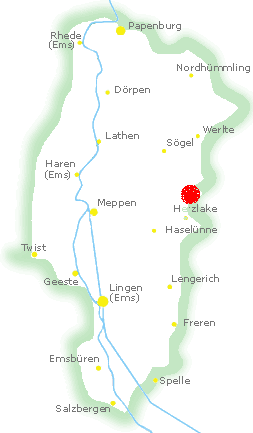 Die nächst größeren Städte sind Löningen, Haselünne, Meppen und Lingen.